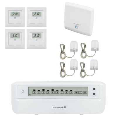 Produktinformationen "Homematic IP Starter Set Fußbodenheizung - 1x HmIP-HAP, 4x HmIP-WTH-1, 4x HmIP-VDMOT, 1x HmIP-FALMOT-C12"